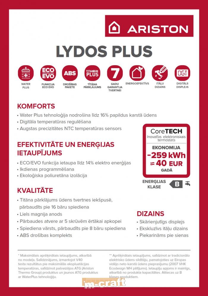Jaunā Ariston sildītāju sērija Lydos, kuru ieprojektēja Umberto Palermo un kas ir saražota Itālijā no visaugstākās kvalitātes materiāliem, ir vienmēr gatava efektīvi un ātri piegādāt vairāk karstā ūdens, salīdzinot ar tāda paša tilpuma standarta ūdens sildītājiem. Atslābinieties un ļaujiet sev atpūsties. Pateicoties jaunajai sildītāju sērijai Lydos, no karstā ūdens plūstošajai baudai nav robežu.