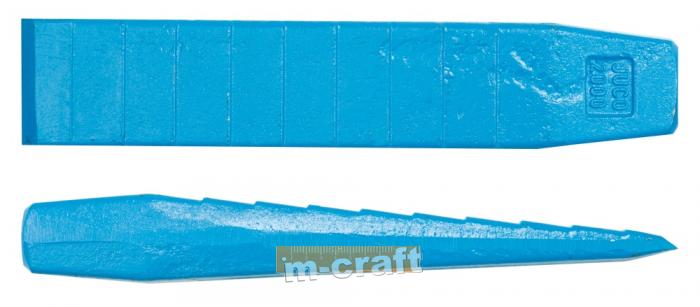 Specjalistyczny stalowy klin do rozłupywania twardego drewna .Schodkowa powierzchnia robocza zapobiega wycofywaniu się klina z materiału.